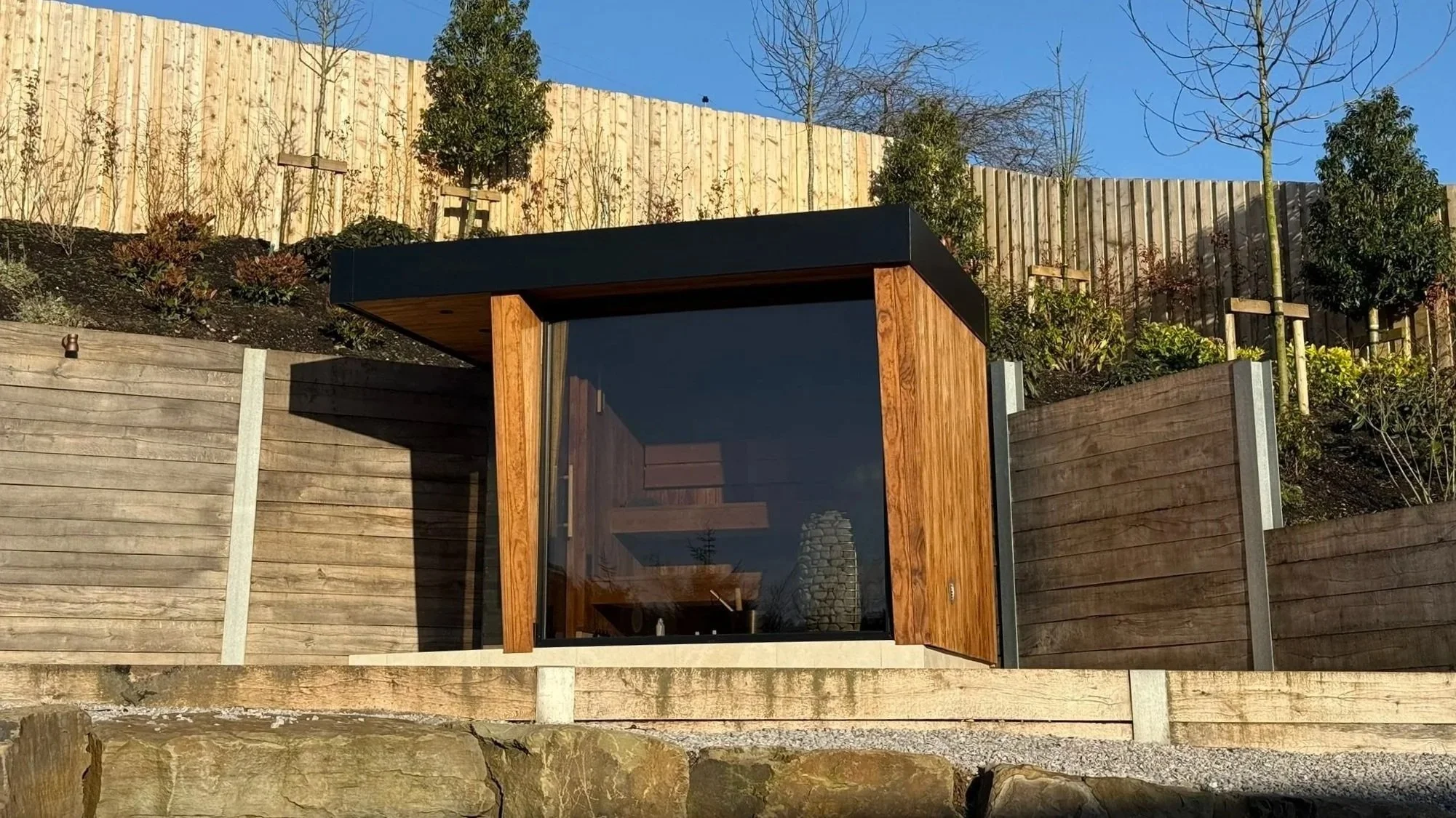 Tucked into a quiet corner of the garden, this sauna project was designed as a space to slow down and switch off. The client envisioned a peaceful retreat positioned perfectly to look out toward the evening sunset — somewhere he could step away from the noise of everyday life and enjoy a moment of stillness.